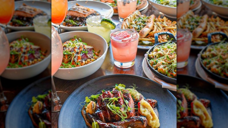 Drinks have similar Southern flair, from the Creole Old Fashioned with creole bitters and crawfish boil bitters to the Heatwave with Olmeca Altos Tequila, passionfruit puree, liqueur, lime, and jalapeños. The Blackened Bloody Mary here is made with lemon shandy and comes with a poached shrimp garnish, ensuring it's a popular brunch choice.