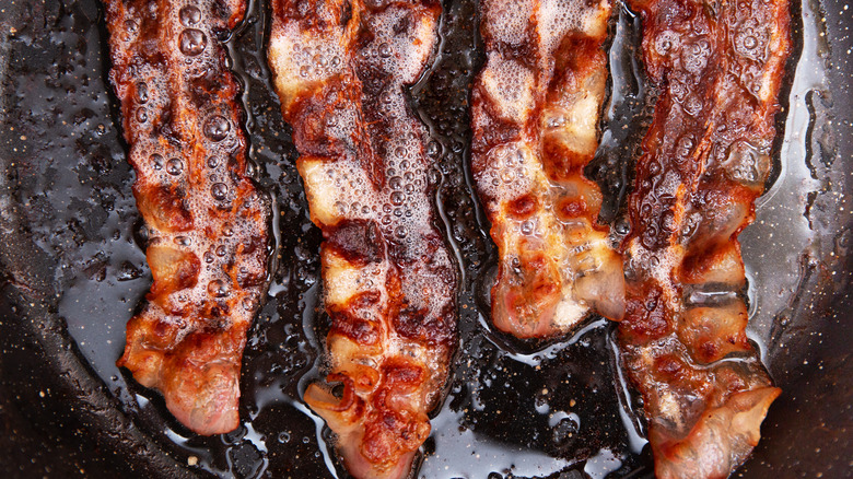 You can fry bacon and cook your potatoes in the leftover grease, but maybe you're worried about the bacon getting cold. In that case, you can just keep a small container of bacon grease on hand. The latter method will open up entirely new culinary avenues because here's the thing — you can cook all sorts of foods in bacon grease. Bacon grease is ultimately just a form of cooking fat, and as such, it serves the same purpose as butter, ghee, or oil.
