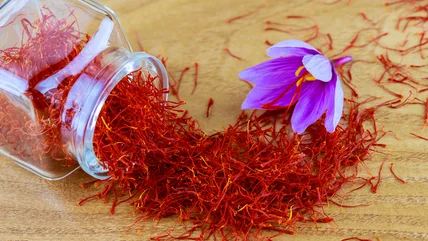 Saffron's flavor is difficult to describe, but some mark it as lightly sweet, floral, and earthy. The spice itself comes from purple crocus flowers — crocus sativus, to be exact — a type of iris. The flower's stigmas, which sprout from its center and are bright orange, are harvested and can be sold as threads or ground into a powder. There are also different grades of saffron, as fraudulent and low-quality saffron products can, unfortunately, be common.