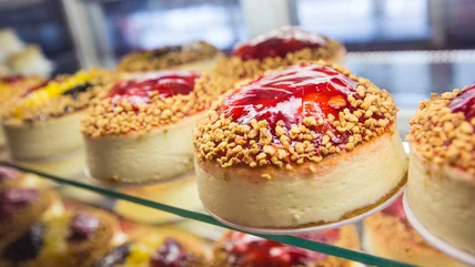 While the "wiggle test" of shaking or tapping the pan might be an old-school baker favorite, you can still overbake your cheesecake while waiting for the jiggling to stop. As the custard of the cake continues to set after it's out of the oven, a perfectly baked cheesecake will actually still have a little bit of a wobble in its center when it's ready to come out of the oven. An overbaked cheesecake, on the other hand, will have a dry texture, and as it cools it will pull away from the sides of the pan and crack.