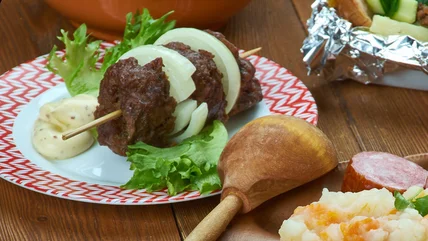 A skewer of berenklauw is frequently served with a spicy peanut sauce that may be familiar to those who have had Indonesian food, particularly Indonesian-style satay. Indonesia was a colony of the Dutch state from the early 1800s right up until World War II. To this day, there are about two million people in the Netherlands -– out of a total of 17 million –- with Indonesian ancestry. Among the many foods that found their way into Dutch cuisine is this savory-spicy sauce. It's also popular today as a way to bring new life to boring old fries, along with many other uses.