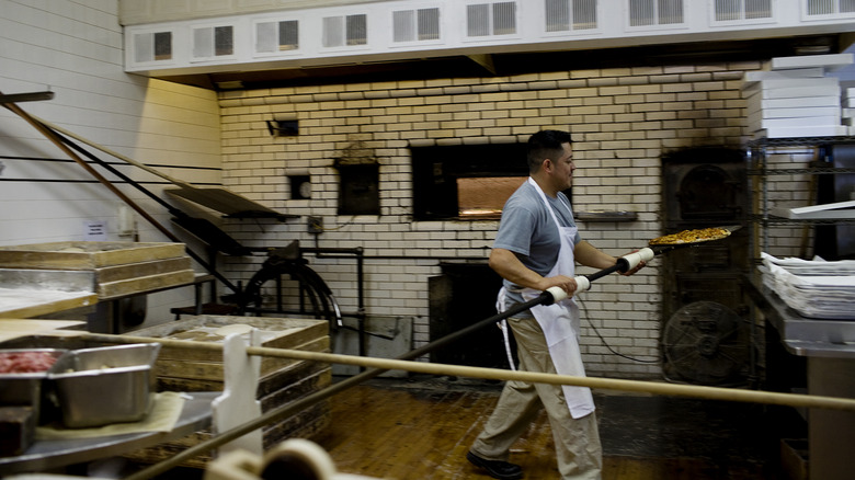 New Haven's pizza stands out for more reasons than the actual pie itself. There's a unique set of terms that you're supposed to use when talking about this style. In fact, we've been breaking one of those rules throughout this whole article: New Haven-style pizza isn't actually called pizza; it's properly known as "apizza," pronounced "a-beetz," which harkens back to the word used by the original Neapolitan immigrants who pioneered this style.