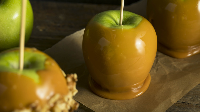 Spooky season is coming in hot, and it's time to start thinking about what you're going to make for this year's Halloween party. While packaged candy is the prize on every trick-or-treater's mind, a proper graveyard smash requires some sweet homemade candy treats like popcorn balls and hard candy apples. If you're planning to make a selection of dipped sweets for your favorite ghouls and goblins, and you want them to look professional, the key is to make sure you don't end up with a puddle of candy at the bottom of your treat when it's placed on a surface to cool. This is also known as a candy foot. If you've ever bought a professionally-made candy apple or a chocolate-dipped banana at the state fair, you might have noticed that they don't have those feet. That's because whoever made them knows the secrets to avoid excess candy coating: Don't over dip, and when a foot forms, break or cut it off and smooth over the broken edge.