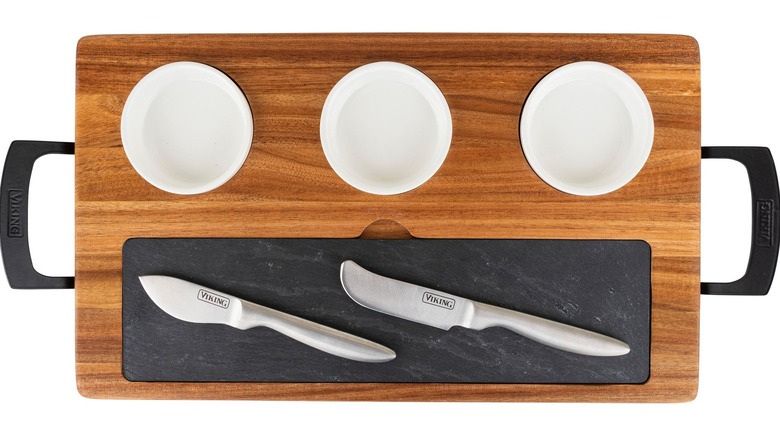Best charcuterie board with accessories: Viking 7-piece Acacia Wood Slate Cheese Board/Charcuterie Set