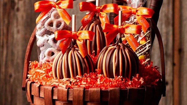 There are many reasons you might need an autumn gift basket, such as a housewarming or harvest party, as gifts for your kids' teachers, or maybe you have a strong hankering for fall vibes. Luckily, Costco has the solution for your gift basket needs with the Mrs Prindables Grand Fall Caramel Apple Gift Basket. It's okay to treat yourself (no tricks).