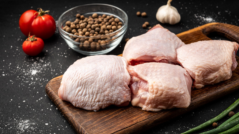 While it's often cooked on the bone, chicken thighs can also be filleted and used in much the same way as any other cut of meat. To be truly frugal, it's best not to throw those bones away either. Chicken bones can be boiled to make a wholesome chicken stock, which can be used to add some umami depth and nutrition to other dishes like soups or noodle bowls. While it takes some time to get a rich-tasting broth, this effectively makes chicken on the bone a two-for-one option to add to your grocery list.