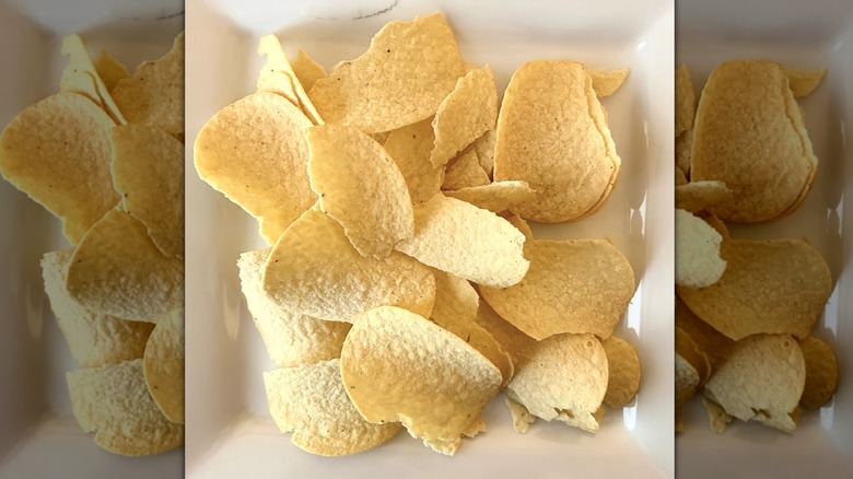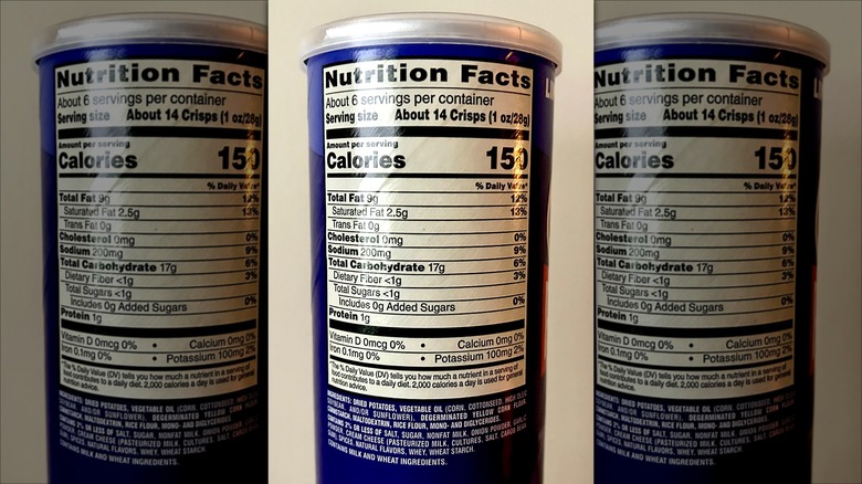 These crisps are unremarkable in the nutrition department. A serving of 14 crisps is 150 calories, with 9 grams of fat, 2.5 grams of saturated fat, 200 milligrams of sodium, and no added sugars. None of these values are all that high in terms of being a substantial percentage of the recommended daily value. That said, most people consume more than one serving at a sitting, which could add up, but you would be hard-pressed to find more than 14 whole crisps in that container.