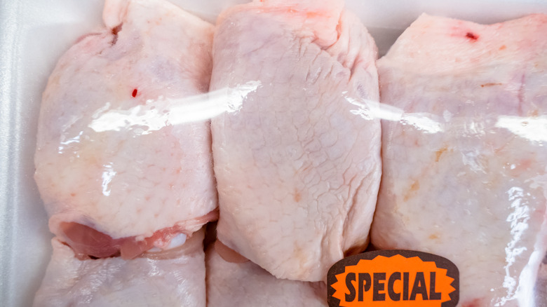 Fortunately, there are other ways to tell this, too. Expiration dates may generally not be 100% accurate, but you can use them in a pinch (as long as you're not relying on them exclusively). If the seal on the package feels loose before you remove it, that's also a warning sign. Excessive juice in the package is, as noted, a potential breeding ground for bacteria. And most importantly, the texture is key: If your meat is slimy, it's a very bad sign.
