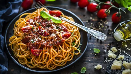 Spaghetti is nothing without its sauce; the two have been satisfying diners together for hundreds of years. Classic tomato-based spaghetti sauce, also known as marinara sauce, has been documented in recipe books since the late 1600s, and its combination with pasta followed soon after, with Francesco Leonardi's "L'Apicio Moderno" listing a pasta with tomato sauce recipe in 1790. While recipes can vary from chef to chef, a basic spaghetti sauce is usually a combination of tomatoes, a fat like olive oil or butter, and additional seasonings like salt, pepper, and garlic. Basil is a frequent component of the sauce, and chopped onions usually make an appearance, too, with both of them adding further dimension to your meal.