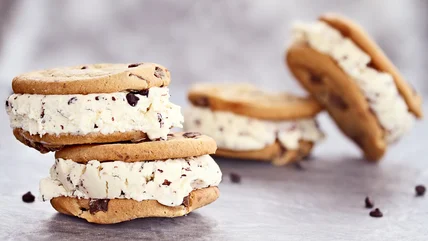 When you're making homemade ice cream sandwiches, cookies make a great base for the treats. You can bake up a fresh batch, and once they're cool, scoop some of your favorite ice cream in between two cookies. Then, press the entire thing together.