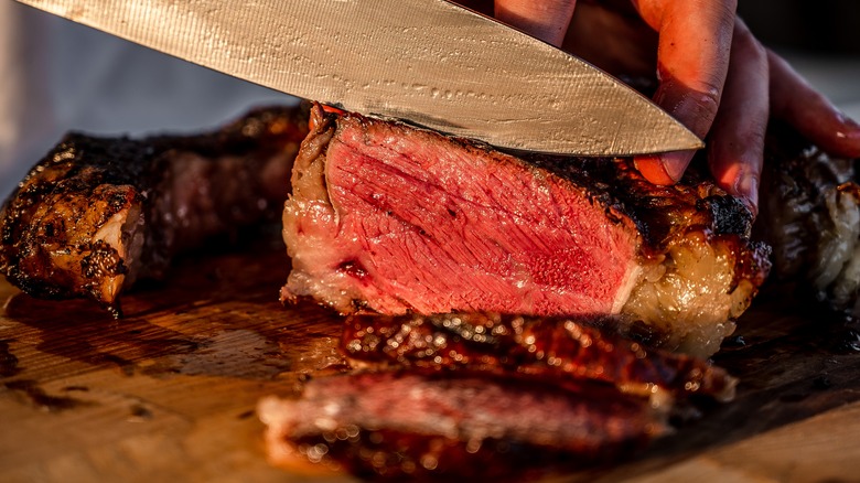 In general, the rule with resting is to let the meat sit for around half its total cooking time. If you cooked a steak for 10 minutes, you'll want to let it rest for five — unless you're dealing with something larger like an entire turkey, which takes hours to cook but shouldn't rest nearly that long (20 to 40 minutes is fine). You can check the internal temp with a thermometer if you really want — what you're going for, no matter the doneness is around 120 degrees Fahrenheit. Lastly, don't ever rest meat under foil; the foil acts to lock in steam and will turn that crispy crust into a sad, soggy mess.