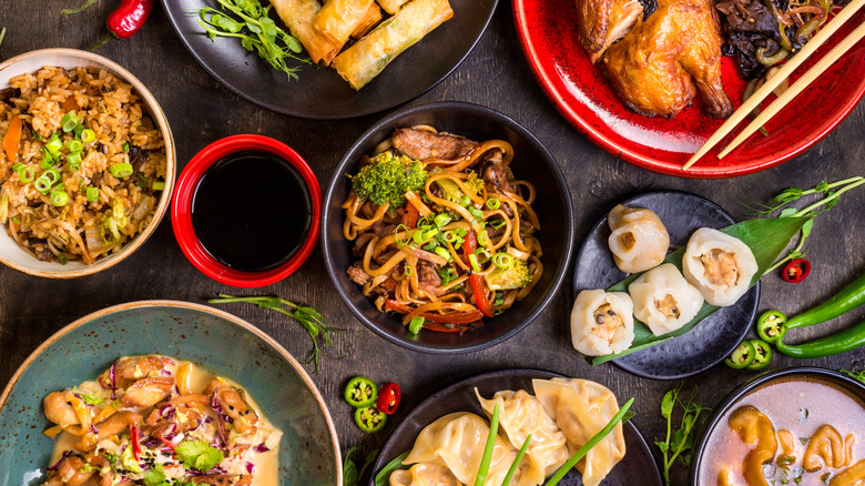 Today, there are more than 24,000 Chinese restaurants across the United States, and most people are familiar with the all-time classics on their menus, like lo mein, fried rice, and General Tso's chicken. But some of these foods may not be the best choice nutritionally. Like all takeout foods, Chinese food, and specifically American-Chinese food, can occasionally be high in sugar, fat, and salt, with certain recipes amping up their quantities for maximum taste. While there are copious items on Chinese restaurants' menus that are ultra-healthy and impart flavor through incredible flavor combinations and fresh ingredients, there are others that are usually pretty unhealthy — and some of the unhealthiest ones might surprise you.