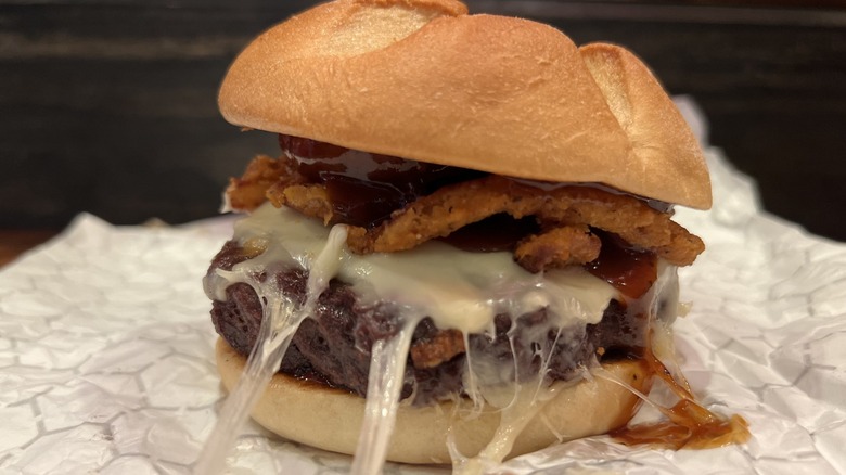 When it comes to meats, unless you've been living in a bubble from advertising since 2014, you probably are well aware that at Arby's, as it proudly boasts in a super deep voice, "We Have The Meats." A quick glance at the menu will confirm its wide selection of "meats," which runs from roast beef to corned, chicken to turkey, and even gyro meat. In select locations in 2016, it even gave venison sandwiches a go, followed by elk and duck. At the time of its launch, Arby's Chief Marketing Officer Rob Lynch said in a statement (via NBC News), "Hunters hunt the meats, and we have the meats, so it makes sense for us to connect with them and offer a sandwich that they can't get at any other restaurant chain." Now, in the fall of 2023, Arby's has gone grand with a new burger idea that not only has beef in it but is also blended with equal parts venison and elk: the Big Game Burger.