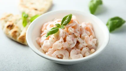 Studies have also suggested that regularly eating Greek yogurt can lower the risk of developing heart disease and diabetes, too. But even if you're not eating the yogurt for its health benefits, it's definitely an easy way to spice up your shrimp salad — or chicken salad or potato salad for that matter. Any mayo-based salad, really, can get a boost of tangy flavor and an extra punch of protein by swapping out that mayo for Greek yogurt (we're partial to Chobani).