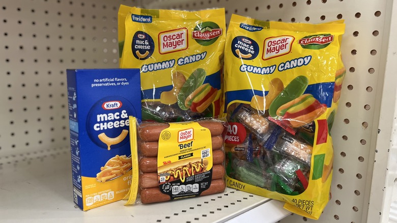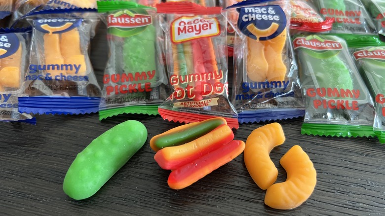 Thanks to German confectionery maker Hans Riegel and his Haribo company, gummy candy overcame its troubling past to become a bullish market centered around squishy little bears. This year, Kraft Heinz partnered up with Frankford Candy to release a new type of gummy candy featuring some of our favorite foods, namely, Oscar Meyer hot dogs, Classen pickles, and Kraft mac & cheese. Frankford Candy's Director of Business Molly Jacobson told Penn Live, "Kraft Heinz Gummy Snack Pack gives fans the opportunity to experience three iconic food brands in a delicious fruit-flavored, gummy candy form."