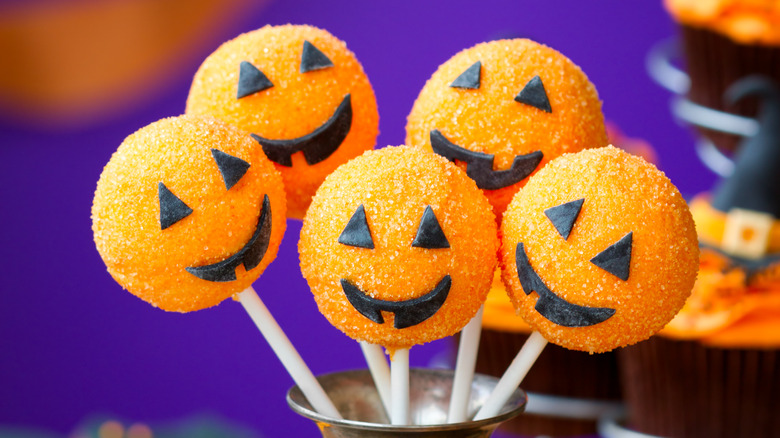 For those who want a sweet treat, try creating jack-o'-lantern cake pops. To make these desserts, follow a classic cake pop recipe, but dip your confections in orange candy melts so they take on a bright, pumpkin-orange color. Then, use an edible marker to draw spooky faces onto each tiny pumpkin.