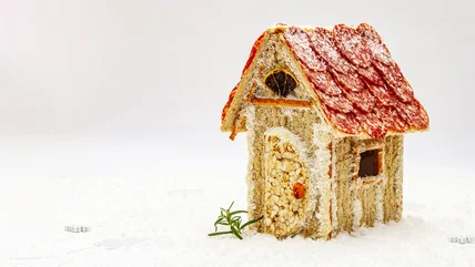 Food is an essential part of the Christmas season, but the traditional offerings lean disproportionately toward the sweet end of the spectrum. Treats like candy canes, sugar cookies, puddings, pies, and eggnog define the holiday. These have been the seasonal foods of choice for generations, and there's little to offer those whose preferences lean more toward the savory. But a change is coming. For too long, sweet-toothers have exercised yuletide supremacy. Not anymore! A growing holiday craze has people swapping salt for sugar in not just any food but the veritable king of all Christmas sweets: The gingerbread house. Say goodbye to the stale cookie shacks of old and welcome a delectable new dwelling: The charcuterie chalet.