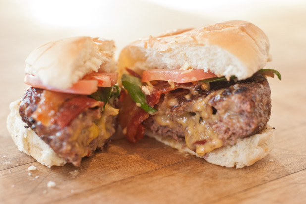 This burger is sold at the Malibu Rooftop Deck, on the 300 level in right field.