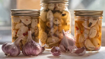 In one of the best-known spicy pickled garlic recipes on the social media platform, a TikToker shows how you can make your own spicy pickled snack at home. The poster begins by adding a generous portion of Sriracha to a jar of pickled garlic, followed by a dash of thyme and a sprinkling of chili powder for some added heat. Once she combines the ingredients, the user gives the jar a vigorous shake to mix everything up; then, it's ready for snacking.