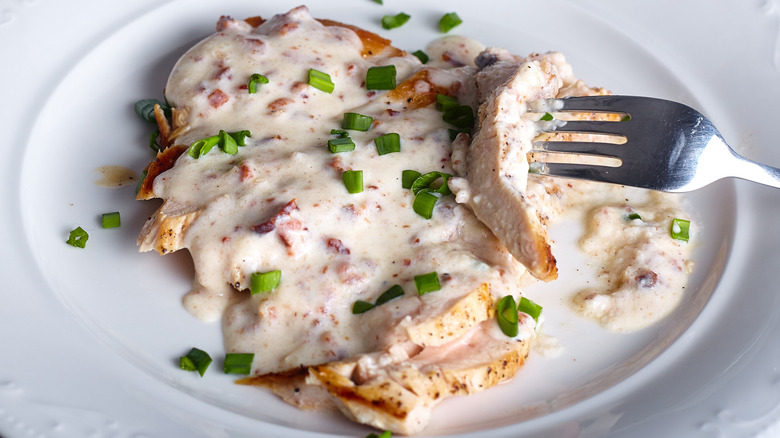 If you're unsure of which sauce you want for your chicken dish, it could be worth it to ask for both. There might be an additional charge, but if you've ever paired red sauce with Alfredo sauce, you know the acidic red sauce and creamy Alfredo make for an unreal flavor pairing. You can do this two ways; either order the standard chicken parm and ask for a side of Alfredo sauce, or order the dish topped with both sauces.
