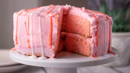 You might wonder what makes pink and red velvet cake members of the same family. What is a "velvet cake," after all? Velvet cakes originated in the Victorian era at a time when cakes typically had a coarse texture. Cake flour wasn't around at that time, but clever bakers figured out they could use acidic ingredients, such as buttermilk and vinegar, to break down the gluten in their baked goods, giving them a luscious, "velvety" texture.