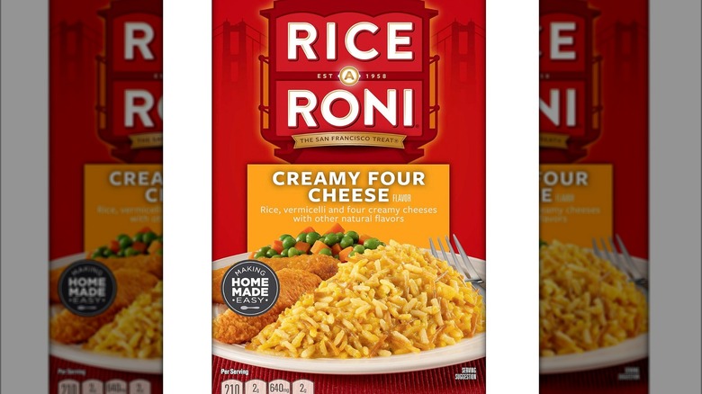 Ben's Original produces several types of rice, many of which can be warmed up in a microwave or boiled in a bag on the stove. One of the company's popular offerings is its Creamy Four Cheese rice, which is made with rice and vermicelli pasta. The good news is that unlike some of the other options on this list, this product uses turmeric for coloring instead of synthetic food dyes. The bad news is that it's still super high in sodium, with each eight and a half ounce packet clocking in at about 36% of the sodium recommended for an entire day.