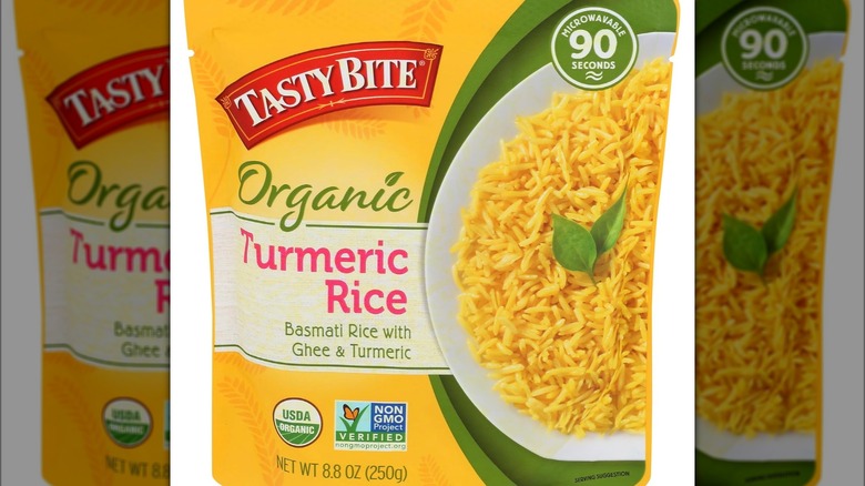Health-wise, you'd be much better off just making a fresh pot of rice from scratch and seasoning it yourself. That way, you can control the amount of salt and butter in the rice. While this rice isn't as unhealthy as some other options on our list here, the fact remains that it still contains an undesirable amount of sodium. Consuming too much sodium can lead to a lot of different health issues, like heart disease, high blood pressure, and stroke. The FDA recommends that people don't consume more than 2,300 milligrams of sodium a day, but the reality is that most Americans consume way more than that: 3,400 milligrams daily. It's also worthwhile to consider the fact that these rice dishes are usually just sides for a larger entree — and there's a good chance the entree itself contains a good amount of sodium. The bottom line is that homemade turmeric rice isn't necessarily difficult or time-consuming to make, so you might as well do your blood pressure a favor.