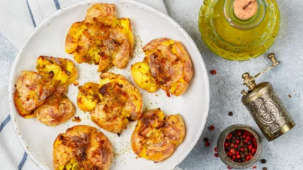 There's some debate over how exactly to pre-cook these potatoes, as some folks only par-boil them before smashing, while others boil them through until soft and tender. Whichever method you choose, smashed potatoes (also known as "crash hot potatoes") are guaranteed to be a hit at the dinner table.