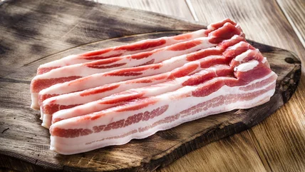 Analyzing the fat composition of bacon, almost half of its fat content is monounsaturated, specifically the beneficial oleic acid, which is linked to heart health. About 35% is saturated fat, which, when consumed in large amounts, has been associated with increased risk factors for heart disease, according to MedllinePlus. However, the exact health implications of moderate saturated fat intake, especially when combined with an overall healthy diet, remain a topic of ongoing research. The remaining 15% of bacon's fat is polyunsaturated that, per Harvard Health Publishing, is known to reduce harmful LDL in the body.