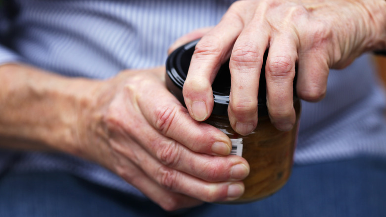 In fact, to open any seemingly impossible-to-open jar, all you have to do is find a rubber band and stretch it around the lid of the jar you want to open. Then, grip the lid over the rubber band and twist it. The lid should come right off. This hack works because, according to Alliance Rubber Company, when a rubber band is stretched, it releases heat, which helps create traction and causes the rubber band to grab the metal lid. This, in turn, allows you to get a much better grip and open the jar quicker than you would just using your hand.
