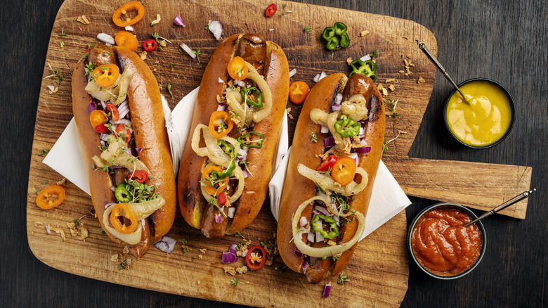 If you have celiac disease or gluten sensitivity, you may be happy to learn that most hot dogs are gluten-free by default; just make sure to double-check the ingredients. You may also want to seek out brands that produce organic hot dogs made with natural ingredients and fewer additives and preservatives. Some hot dog brands also produce low-sodium or reduced-sodium versions for people who need to limit their salt intake, such as those with hypertension or heart conditions, as recommended by Heart.