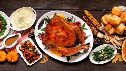 To make Thanksgiving leftover-flavored egg rolls, you'll need a package of egg roll wrappers, as well as food for the filling. Make sure the leftovers are small enough to add in without overwhelming the wrapper — that means shredding the turkey and chopping up any larger pieces of stuffing and veggies.