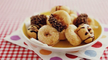 Cinnamon sugar and powdered sugar are two simple yet classic options. If you're using these, be sure to coat the donuts while they're still hot and a little oily, so the sugar sticks better.
