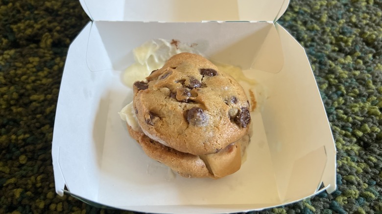 The Cookie BonBite Sandwich may look out of its league in comparison to its three ginormous secret menu brethren, but sometimes mighty things come in petite sizes. This also may be one of the more approachable secret menu items, as an eater could conceivably finish it in one sitting, without the help of anyone else (sharing might be caring, but this is the exception to that rule). The cookie exterior is super soft, lusciously chewy, and embedded with an abundance of delicious chocolate chips. The rich cream cheese frosting can barely stay between its "buns," but some of the best hamburgers and sandwiches have trouble keeping it all together. Life is messy, desserts should be too.