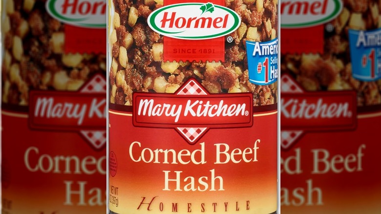 Hormel Mary Kitchen Corned Beef Hash is a blend of ground meat with diced potatoes, seasoned with spices. It provides a practical breakfast solution, whether served with over-easy eggs or wrapped in a burrito.