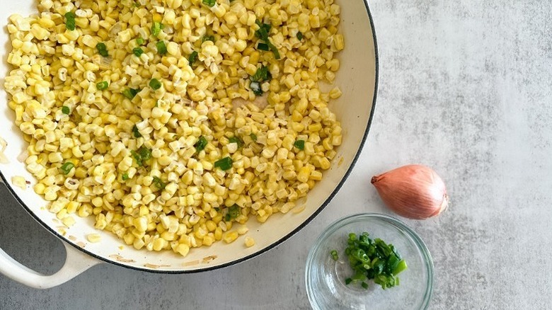 It's impressive how delicious this creamed corn dish is since it only requires a handful of ingredients. However, since you first sauté the butter and shallots together until they're aromatic, it creates a more complex flavor. After that, you can pour in the corn and seasonings.