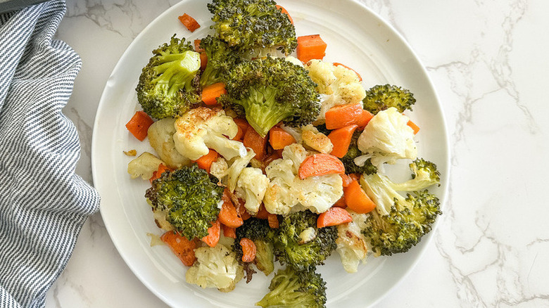 Nothing quite beats the taste and texture of crispy roasted vegetables, especially in a sea of soft foods like dinner rolls, cranberry sauce, and pumpkin pie. This recipe uses fresh broccoli, cauliflower, and carrots, and turns out much better than if you use frozen vegetables.
