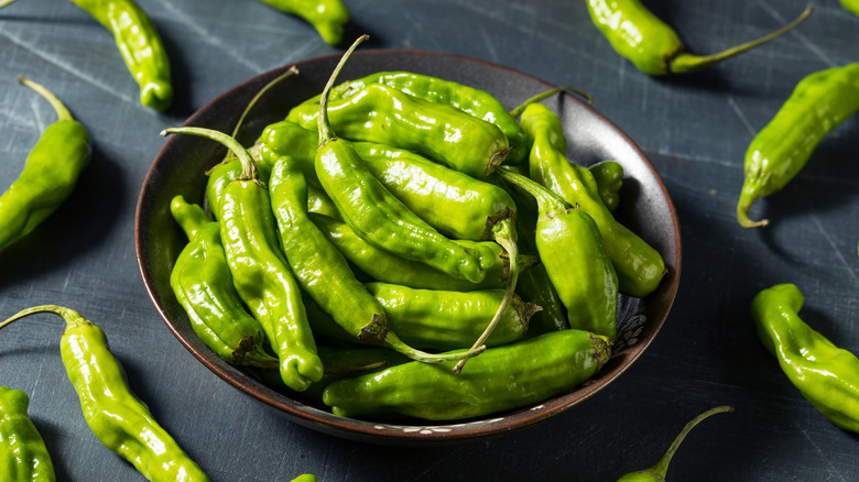 Shishitos are generally slightly sweet and somewhat similar to bell peppers. Compared to other types of peppers, shishitos are surprisingly mild, registering only 50-200 Scoville units. For context, a jalapeño ranges from around 2,500 to 10,000 Scoville units, while a habanero falls between 150,000 and 325,000 units — and those aren't even close to the spiciest peppers available. This means that even those who aren't fans of spicy foods can enjoy shishitos most of the time. Their mildness also allows them to pair well with stronger flavors like ginger, lime, and soy sauce.