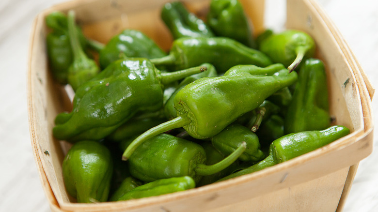 Shishito peppers are becoming increasingly common in America, and in any major city, you can find them at most major grocery chains. In more rural areas and smaller cities, though, you'll have to work a little harder to locate them. If you have access to a specialty grocery store like a Japanese market or an H-Mart, you're likely to find them there. You can also order them online at retailers such as Amazon, as they tend to travel well. And if you're wondering, there's no way to determine which shishito peppers will turn out to be spicy just by looking at them; you'll simply have to take your chances.
