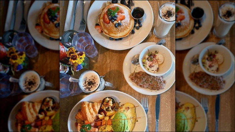 The menu here offers farm-to-table comfort food; order the Plow with house-made potatoes, eggs, lemon ricotta pancakes, and your choice of sausage patties, bacon, or chicken apple sausage.