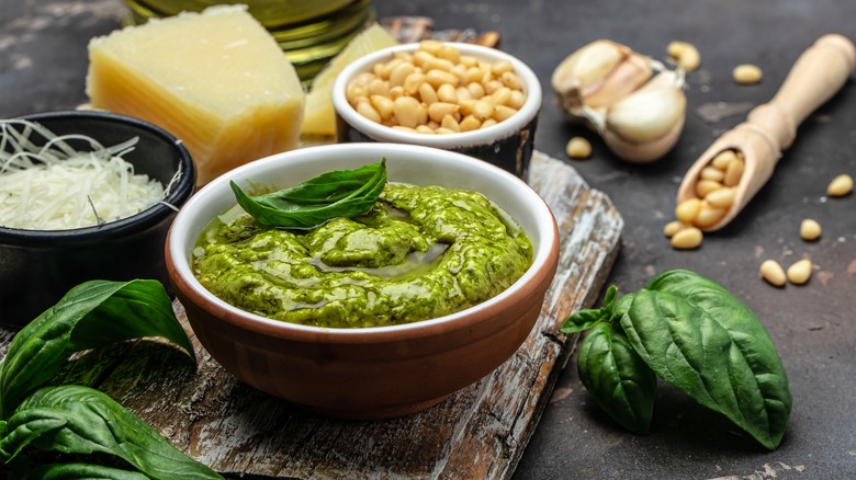 There are plenty of variations on the classic preparation featuring pine nuts and basil. The word "pesto" itself in Italian simply "refers to anything that is crushed," according to Italian cookbook author Laura Lazzaroni. While this word, in a culinary sense, traditionally does refer to a pesto alla Genovese (the bright green and herbaceous pesto most of us are used to), riffs on this classic sauce abound.