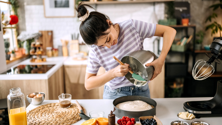 Speaking of sprinkles, classic duos like birthday cake and ice cream can be taken one step further when you combine the ingredients together before baking. Melted ice cream can upgrade a boxed cake by adding additional moisture and creaminess. Nix the water and oil that traditional boxed cake recipes call for, and use your melted ice cream instead. Some bakers will purposefully melt ice cream in order to achieve this moist-cake hack.