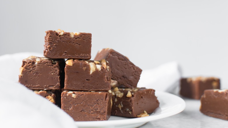 Luckily, the melted ice cream fudge hack works with plenty of ice cream flavors, especially those that pair well with melted chocolate. Obviously, ice cream flavors like chocolate and vanilla will taste delicious in fudge form, but other fan favorites work just as well if you're willing to think outside the box. Add some chopped nuts to the top of your chocolate butter pecan fudge or a sprinkle of crumbled cookies to your mint chocolate chip fudge. Even fruity ice cream flavors that you wouldn't expect to blend well — like white chocolate raspberry or blueberry cheesecake can add a touch of tang to your chocolatey fudge, creating a flavor profile so complex, you won't believe it was only two ingredients.