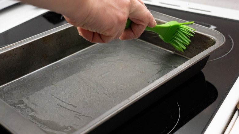 Instead, you should always work with a greased pan when cooling caramel, especially caramel candy. For the best results, use a cooking spray. Cooking sprays are preferable as they have better coverage, getting into all of the corners of the pan more efficiently. Make sure that you don't use too much cooking spray or too much of any other fat you're using — it will make your caramel too greasy.