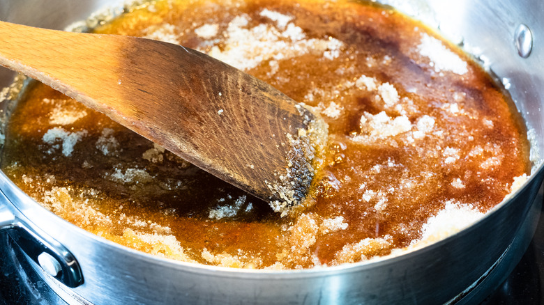 One of the joys of caramel is its deep, nutty flavor and golden-brown appearance — but it's all too easy to take things too far. Caramel can burn fast, and when it does, it develops a bitter, unpleasant taste. This usually happens due to two main reasons: either leaving your caramel on the stove for too long (often by becoming distracted and stepping away from the pot) or by using a heat that's too high.