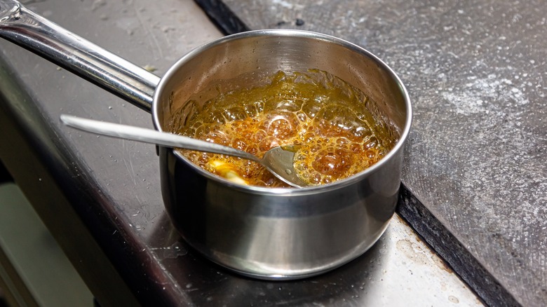 Whatever you're using to make caramel, though, the process involves a lot of heat and a lot of risk. Sugar can become incredibly hot and very sticky when it's cooked, making it highly dangerous to handle. To add to this, it's also a substance that burns exceptionally quickly and has to reach a very specific temperature to make caramel effectively. All of these factors make cooking caramel at home pretty daunting, which is partly why we leave it to confectioners. Luckily, though, the key to cooking candy-store-level caramel is to avoid the most common mistakes that people make — and we've put them all here.