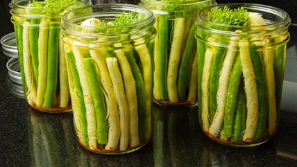 When canning via boiling water, be sure to use a pot that is big enough to allow your jar to be fully submerged. This will help ensure that the jar is properly sealed. You should also avoid laying the jars on their sides in the pot to prevent an improper seal. After the canning process, double-check that your seal is properly set. Give the jar of green beans around a day to properly cool. From there, gently press your finger into the center of the jar to make sure the lid doesn't move. Pickled green beans have a sour taste compared with regular green beans, making them a pleasantly tangy snack to munch on.
