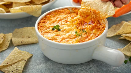 You can make your own easy buffalo chicken dip with just four basic ingredients: buffalo sauce, chicken, cream cheese, and either ranch or blue cheese dressing. For even more ease, try using canned chicken. It's inexpensive, precooked, and it creates a creamier texture than typical shredded chicken. Plus, it also means you can mix up the dip that much quicker.