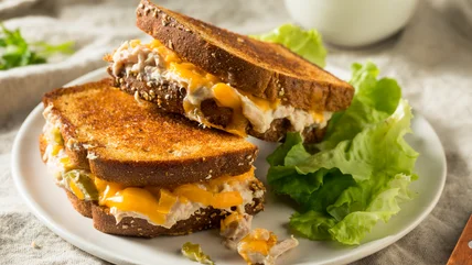 The tuna melt sandwich is a popular lunch item, found on menus across the country. An iconic sandwich, it's essentially a combination of a simple grilled cheese with a tinned fish salad. There aren't a lot of common fish and cheese pairings, but somehow, this blend of creamy melted cheese and tangy tuna on toasted bread is the perfect combination of flavors. Some restaurants serve open-faced tuna melts, and others serve them with two pieces of toasted bread for a filling lunch.