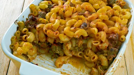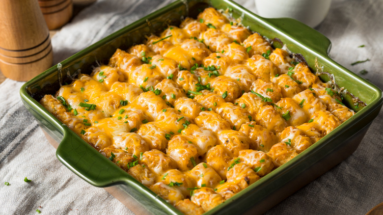 The hotdish is an iconic casserole-like comfort food that represents the frugality and creativity of Midwesterners. The first recipe for a hotdish was included in a Minnesota Lutheran church cookbook in 1930. The original Minnesota hotdish was similar to (but not quite the same as) a casserole. The recipe included 2 pounds of ground beef, Creamette elbow macaroni, and frozen peas. In 1934, Campbell's introduced its first condensed creamed soups. These could be used as a binder or base for any hotdish. In 1953, Ore-Ida introduced Tater Tots, which rapidly became the go-to topping of choice for any hotdish.